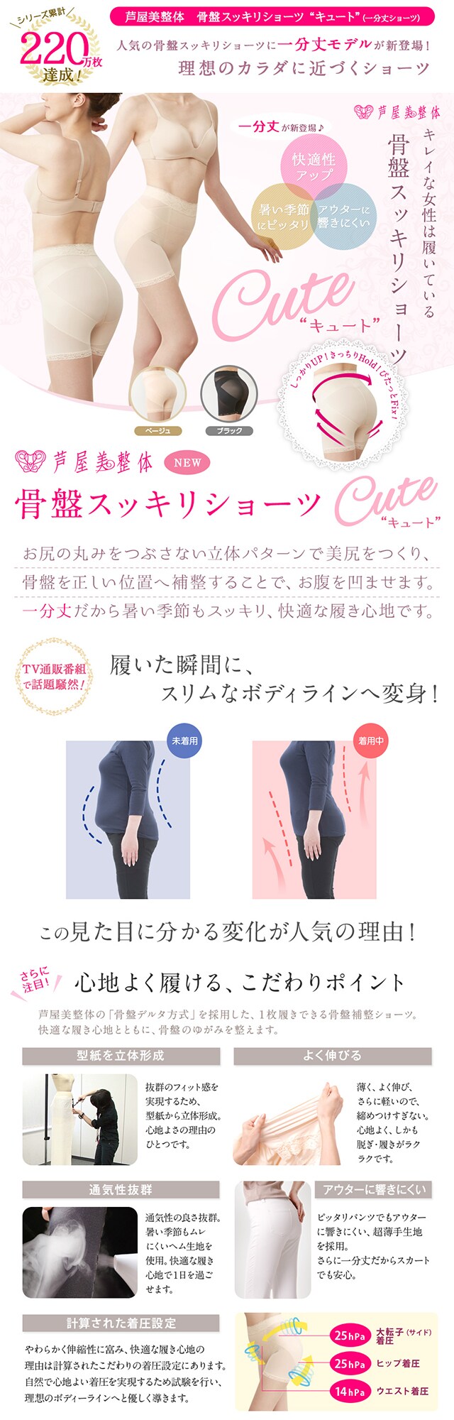 [ブラック・ベージュ/Mサイズ] 芦屋美整体 骨盤スッキリショーツ Cute 2枚セット | 骨盤まわりをやさしく包み込んでサポートするショーツのご紹介。