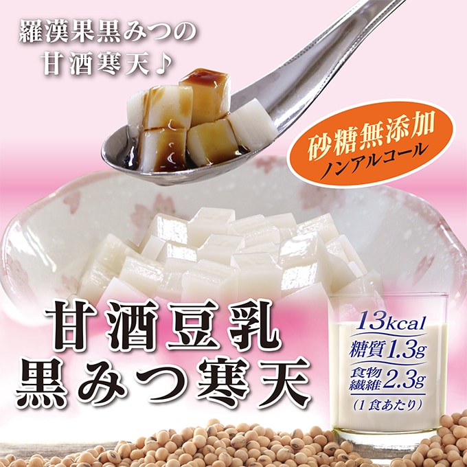 【甘酒寒天】エリスリトール、酒粕パウダー、調整豆乳粉末、米麹、寒天、PH調整剤、(原材料の一部に大豆を含む)