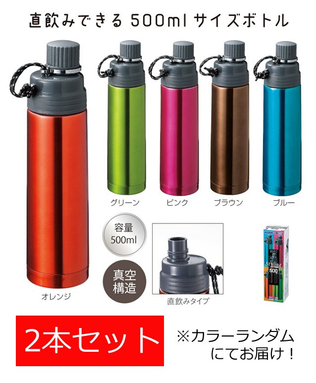 直飲みOK!スタイリング飲み口ボトル 500ml 2本セット | [真空構造]直飲みタイプなので蓋がどっかいっちゃうこともありません♪※カラーランダム