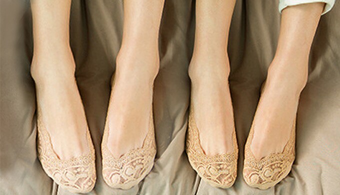 [ライトベージュ×ダークベージュ/22.0〜24.0cm]脱げないレースフットカバー 4足セット | おしゃれ美人は足元も快適に。360度滑り止めゴムがずれにくいポイント!