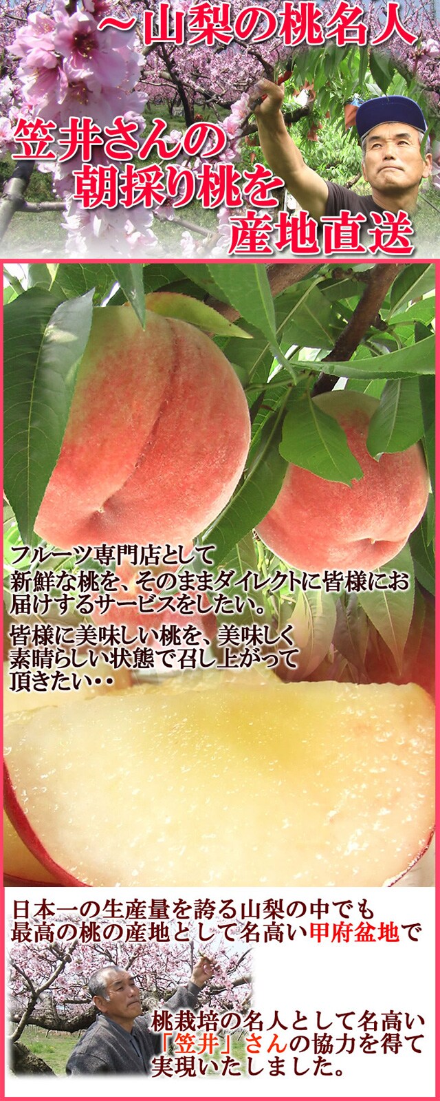 日本一の桃源郷 山梨の桃名人 笠井さんからの朝採り桃を産地直送します。