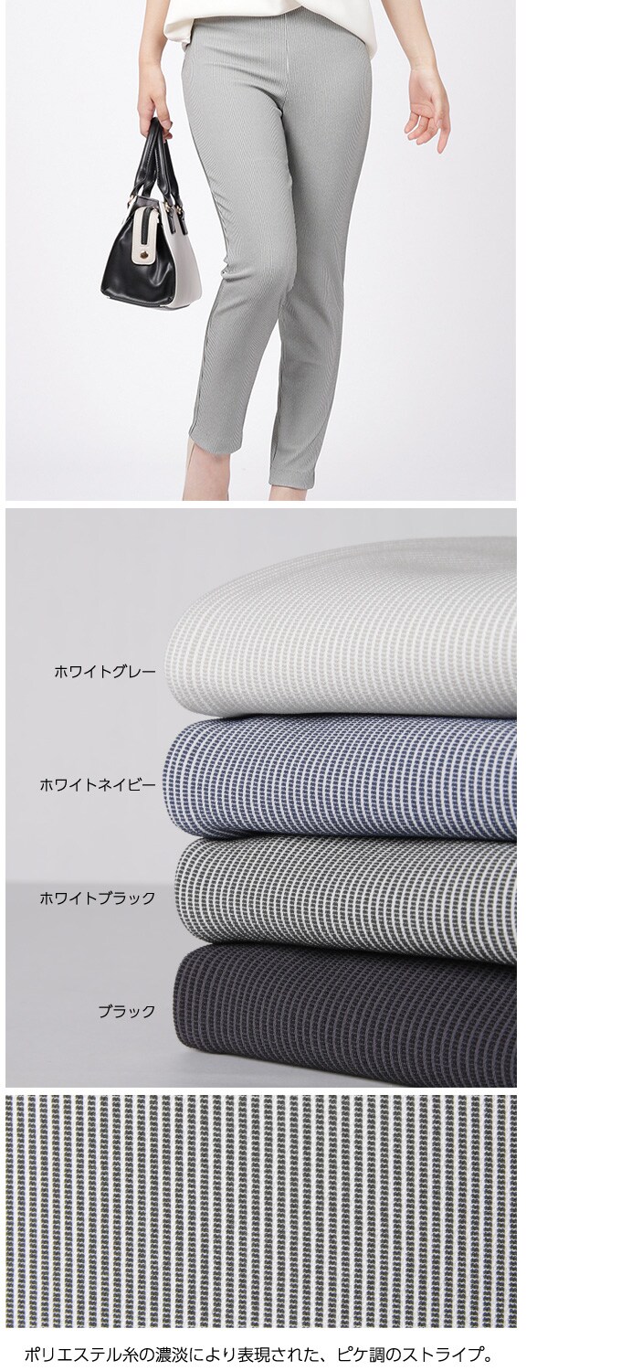 [ホワイトグレー/S]日本製!カジュアル感と女性らしさを兼ね備えたUVカットストライプパンツ