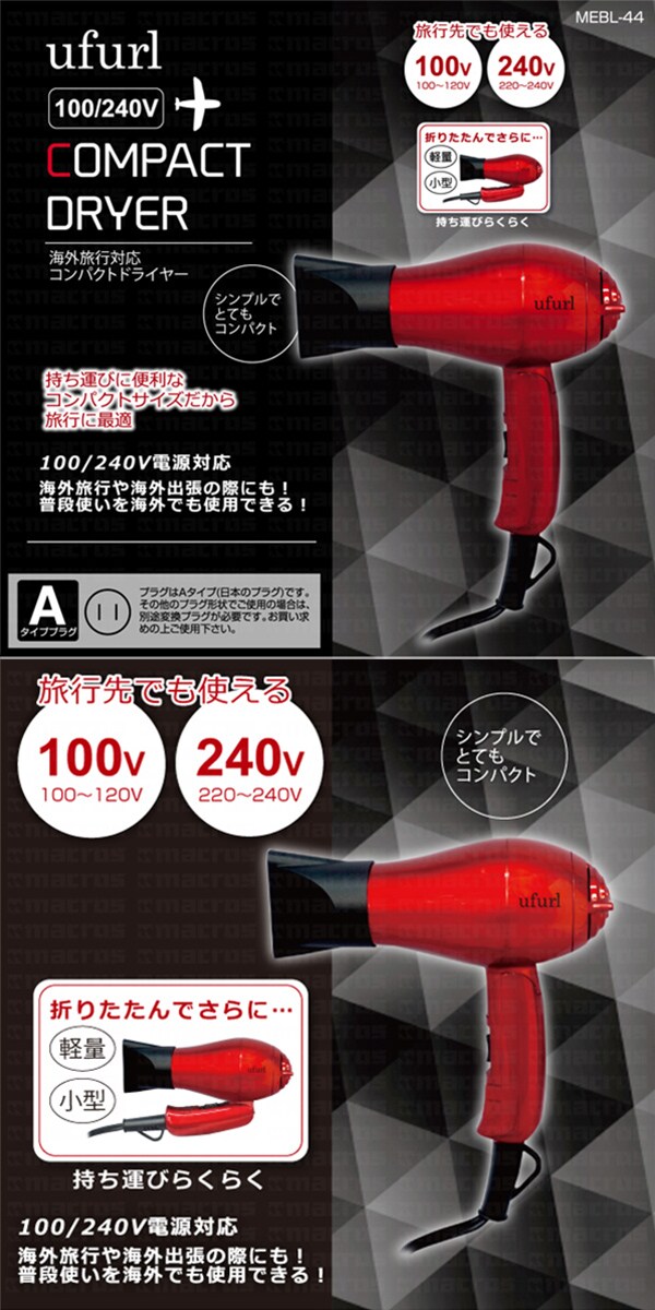 ufurl 海外対応コンパクトドライヤー | 海外旅行や海外出張時に!普段使いを海外でも。