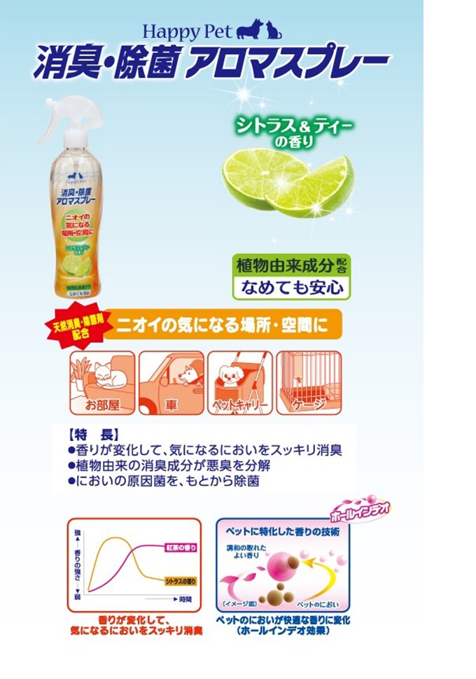 - 【3個セット】ハッピーペット/消臭・除菌アロマスプレー 気になる場所・空間に/シトラス&ティーの香り/300ml