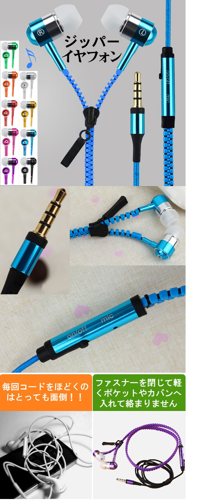 イヤホンコードが絡まるイライラを解消!見た目も可愛く、オシャレ!洋服のファスナーみたいに閉じることができます。