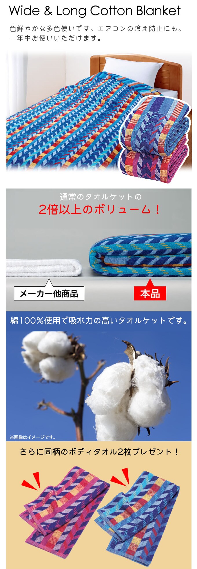 ワイド&ロング ボリュームタオルケット(ボディタオル付) シングル 2色計2枚 | 綿100%のボリュームあるワイド&ロングタオルケット。