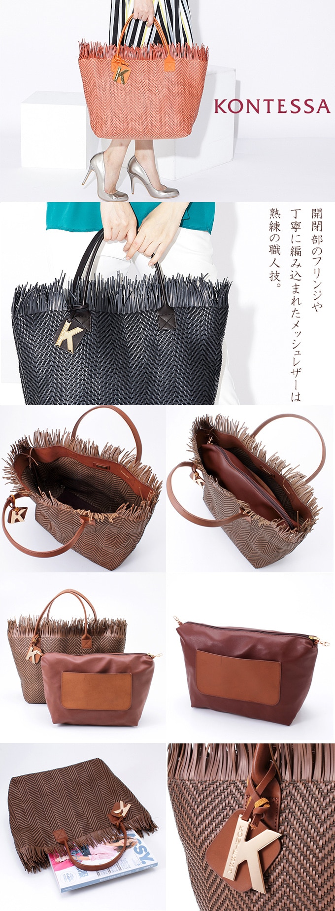 [T.Moro]KONTESSA(コンテッサ)レザーメッシュ編込みトートバッグ