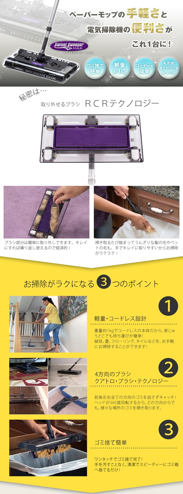 [替えバッテリー付き]スイブルスイーパーマックス | 軽量・手軽に楽々お掃除♪
