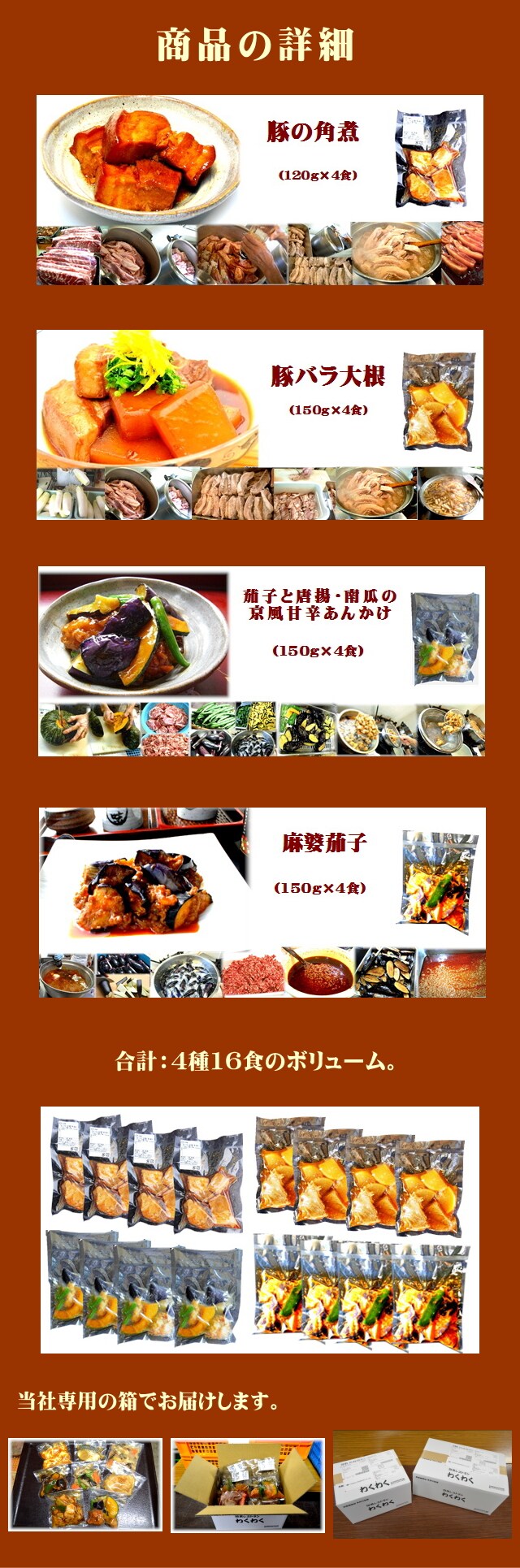 - 【4種16食】ガッツリ系!手作り京惣菜 /温めるだけの簡単調...