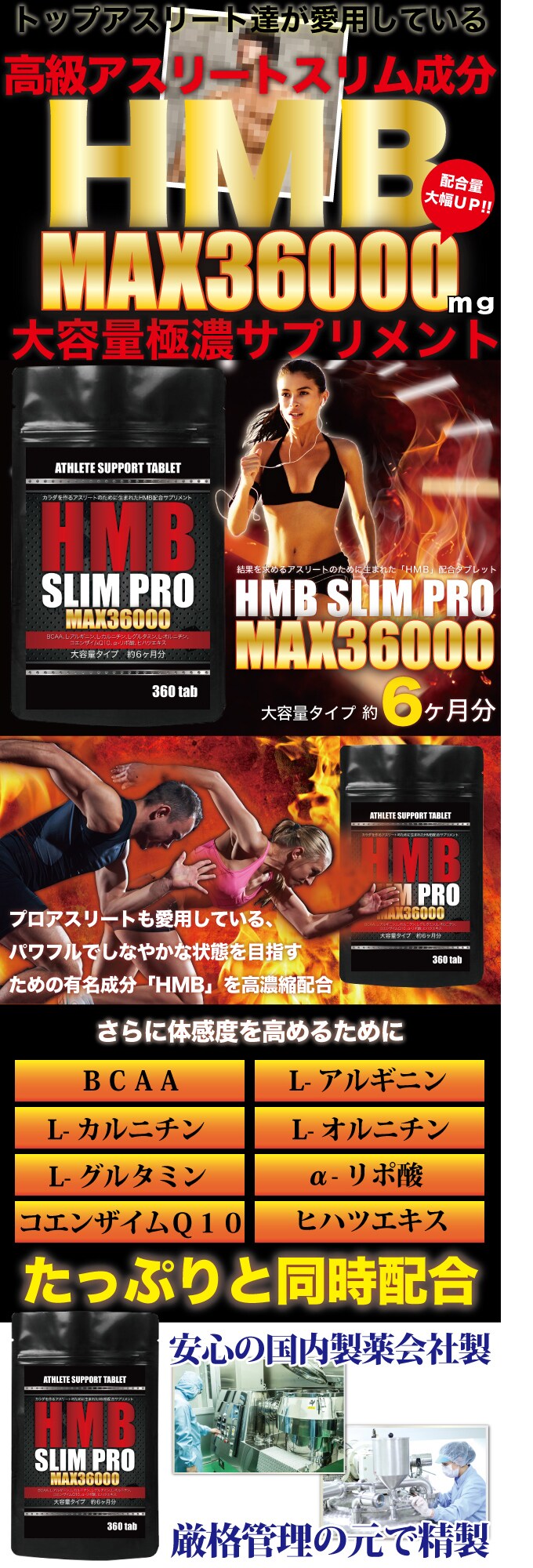 HMBスリムプロMAX36000 大容量タイプ約6ヶ月分 360粒 | ≪1袋に36000mg≫HMB成分を大幅増量して再登場!プロアスリート仕様の超人気ダイエットサプリメントがパワーアップ!!