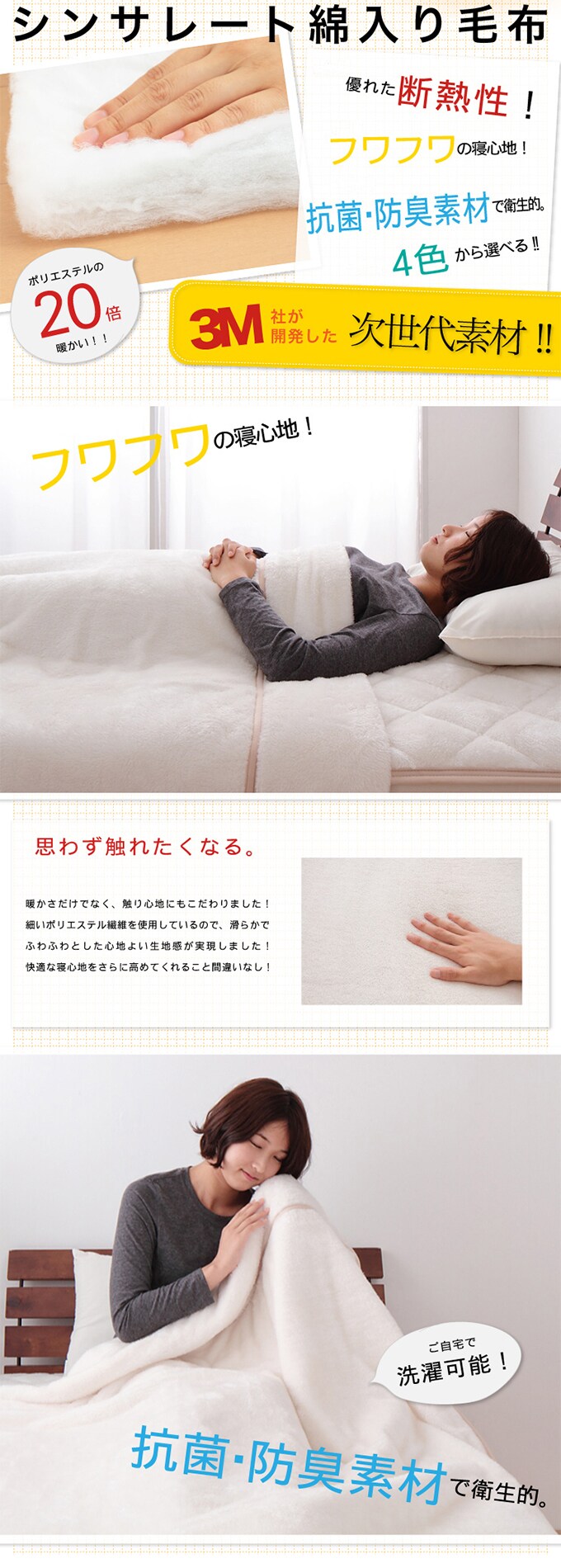 - 【ネイビー】シンサレート あったか 毛布 シングル