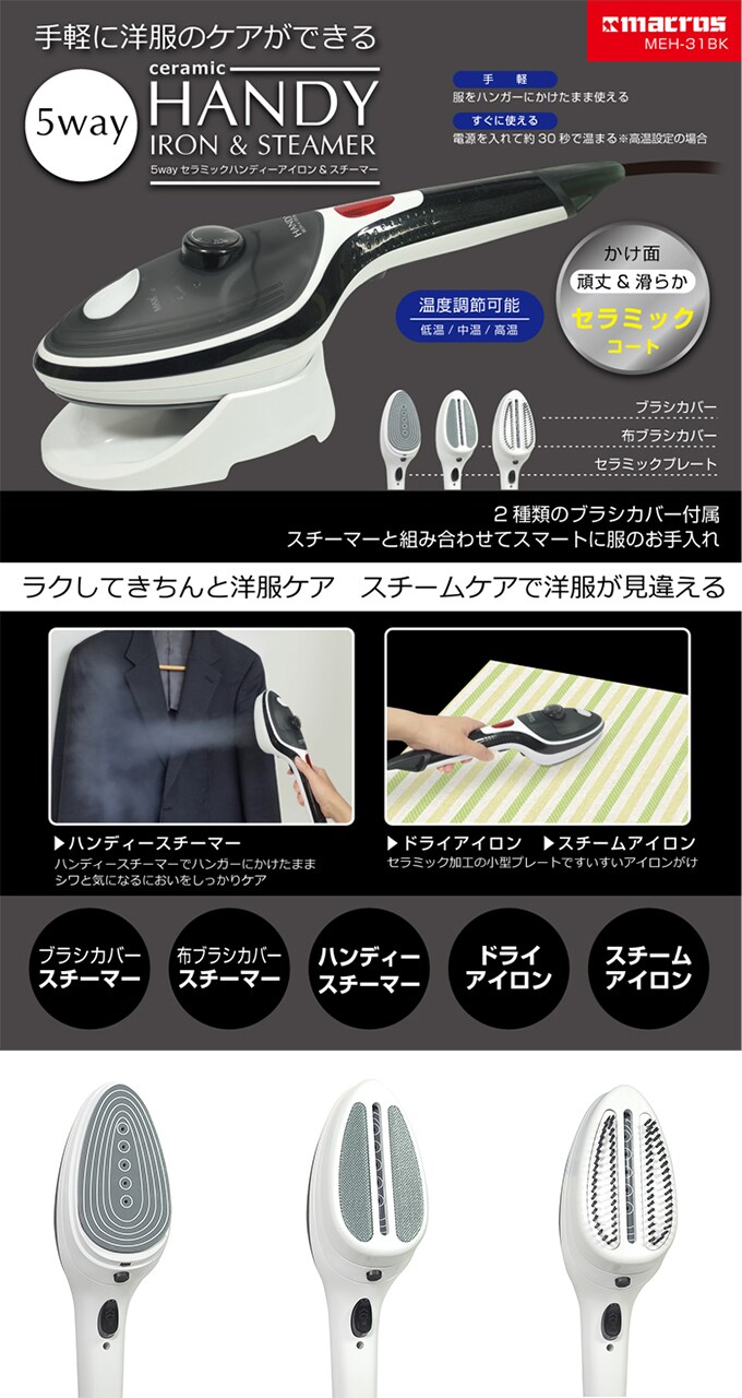 - 5WAYセラミックハンディアイロン&スチーマー BK