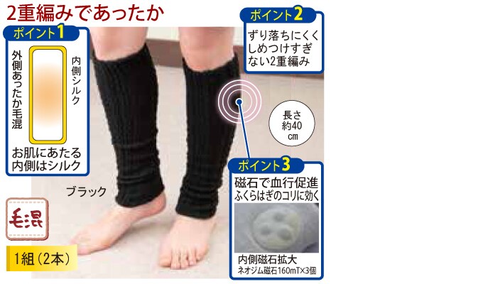 血行足進 裏シルク レッグウォーマー | 二重編みであったか!ふくらはぎ部分の磁石で血行促進!コリに効く