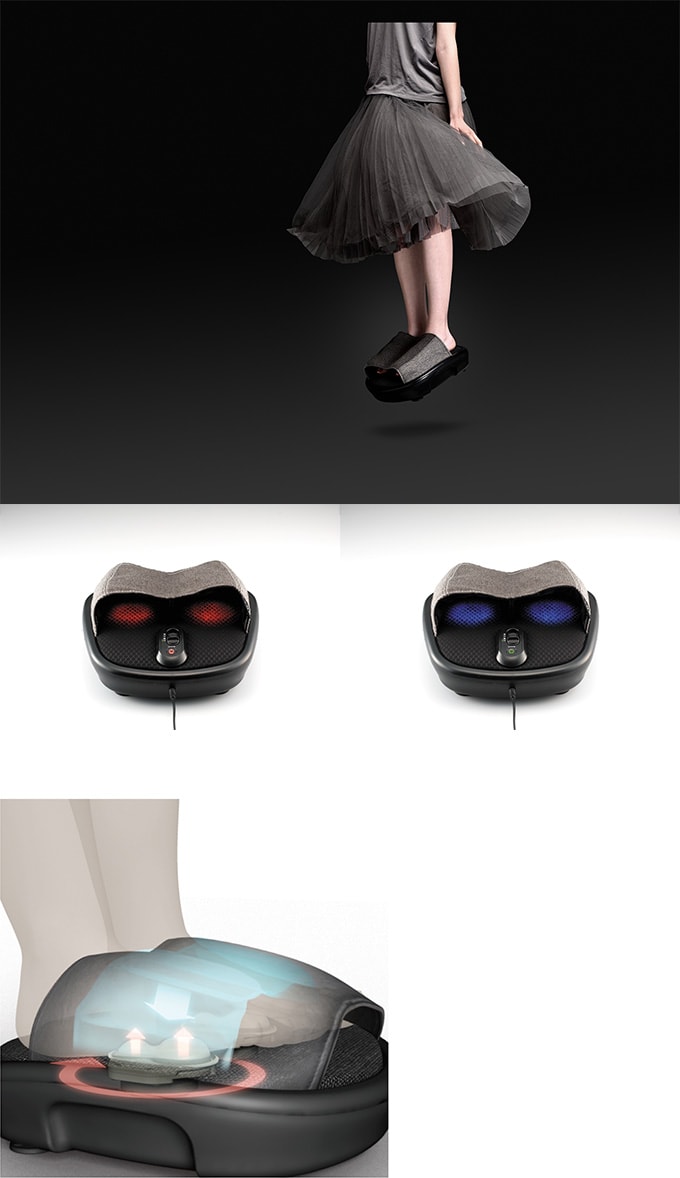 包み込む「エアバッグ」とやわらか「シリコンもみ玉」で、新感覚マッサージ。足の甲を包み込むエアマッサージと足裏を刺激するやわらかシリコンのもみ玉が「しっかり、でも痛くない」絶妙なもみ心地を実現しました。指が出る前あきだから、マッサージ中も蒸れにくく快適。好きな位置でマッサージもでき、足のサイズも選びません。