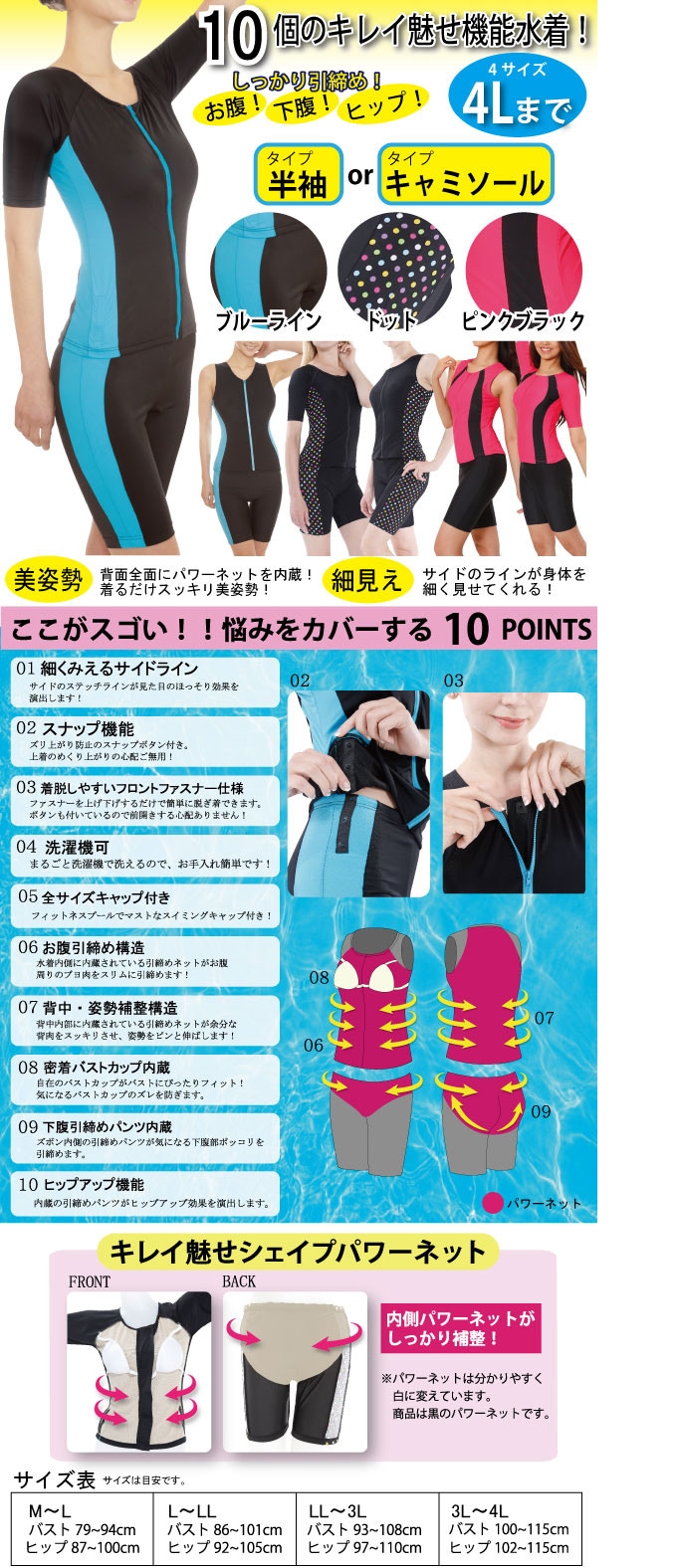 水着内側に内臓されている引締めネットがお腹周りのブヨ肉をスリムに引き締めます。