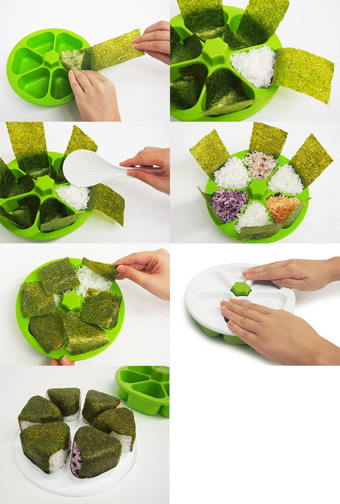 ◆本体にご飯を入れてギュッと押すだけ!おにぎりに直接触れずに作れるので衛生的です。