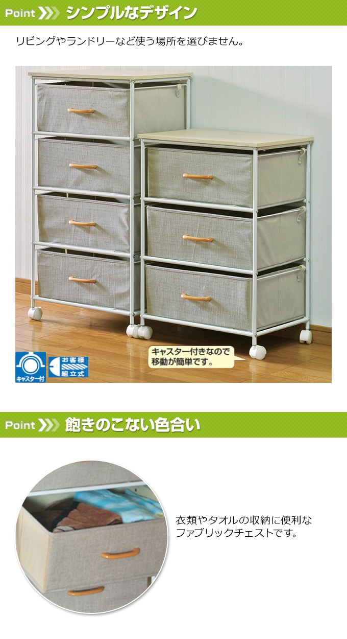 [4段]ファブリックチェスト | 衣類やタオルの収納に便利なファブリックチェスト。