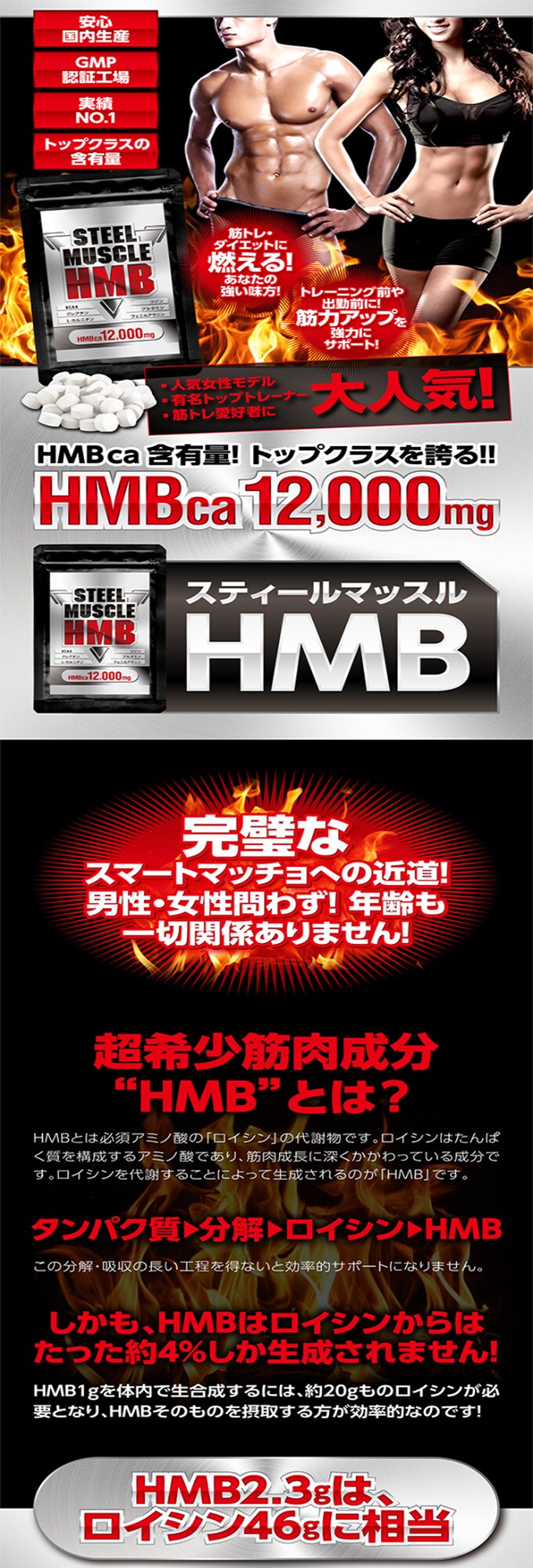 STEEL MUSCLE HMB12,000mg 120粒 | 大好評!話題のHMB《スティールマッスル》成功者続出!有名女性トレーナー&モデル愛用!筋トレ・ダイエットに燃える強い味方!