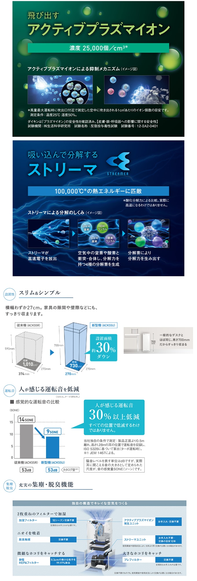 ・運転音:空気清浄:19〜53dB、加湿空気清浄:25〜53dB