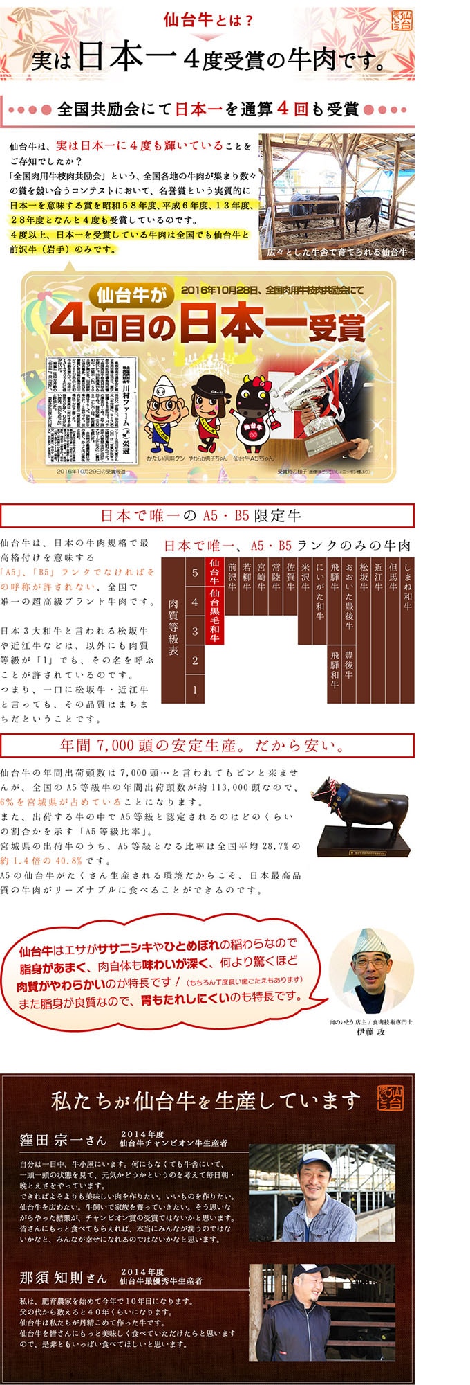 全国で4回日本一を受賞しているA5ランク仙台牛!醤油と砂糖だけでじっくり煮込みました。