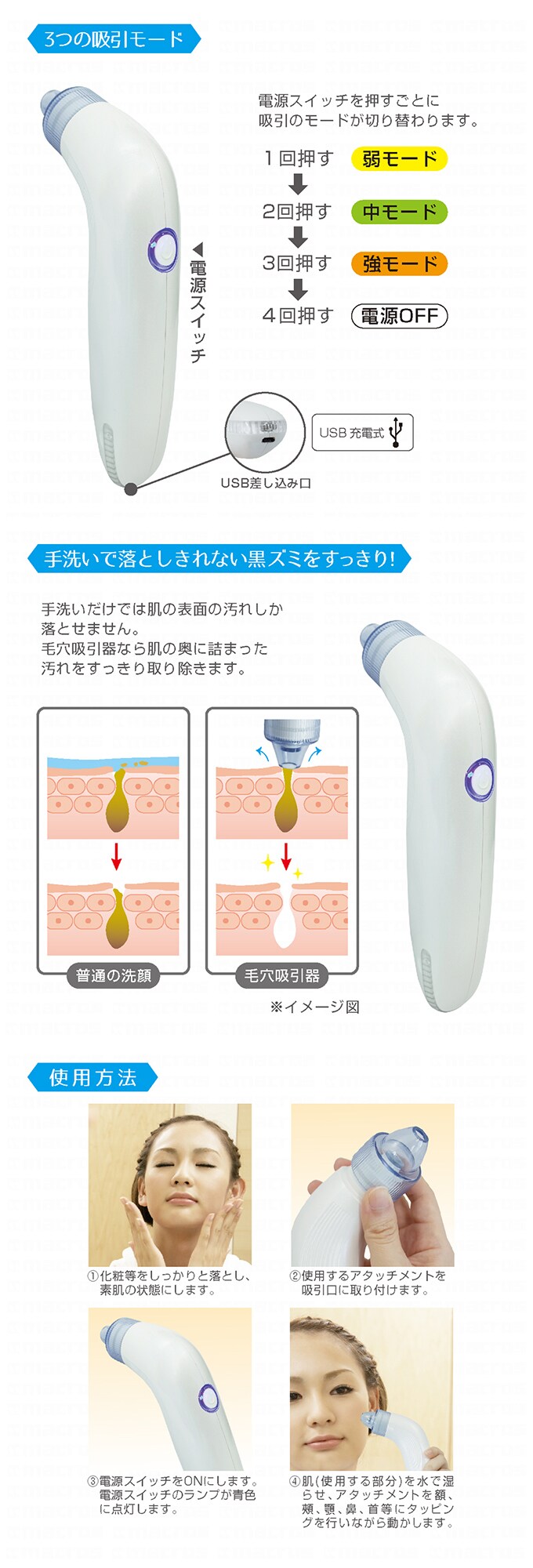 ufurl 毛穴吸引器フェイスビューティスポット|手洗いでは落とせない毛穴の黒ずみ汚れを吸引して除去!!
