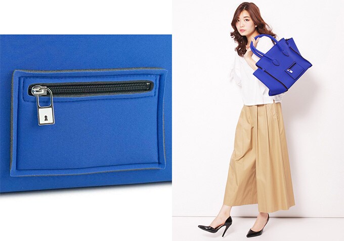 ※バッグを濡れたまま、又は濡れたものを収納したまま長時間使用されますと衣服や収納物にバッグの色移りが起こる場合がございますのでご注意ください。