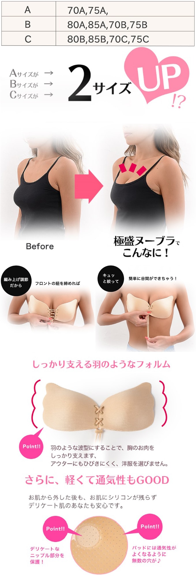[2個セット][ベージュ/Cサイズ]極盛ヌーブラ | 軽いつけ心地で、締め付けない。可愛い羽のような形でしっかり支え、自分好みの谷間の調整