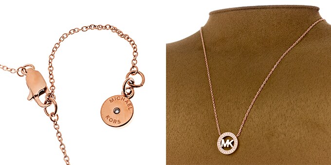 [ピンクゴールド] MICHAEL KORS パヴェ MKロゴ スタッド ネックレス | MKロゴに注目度UP♪