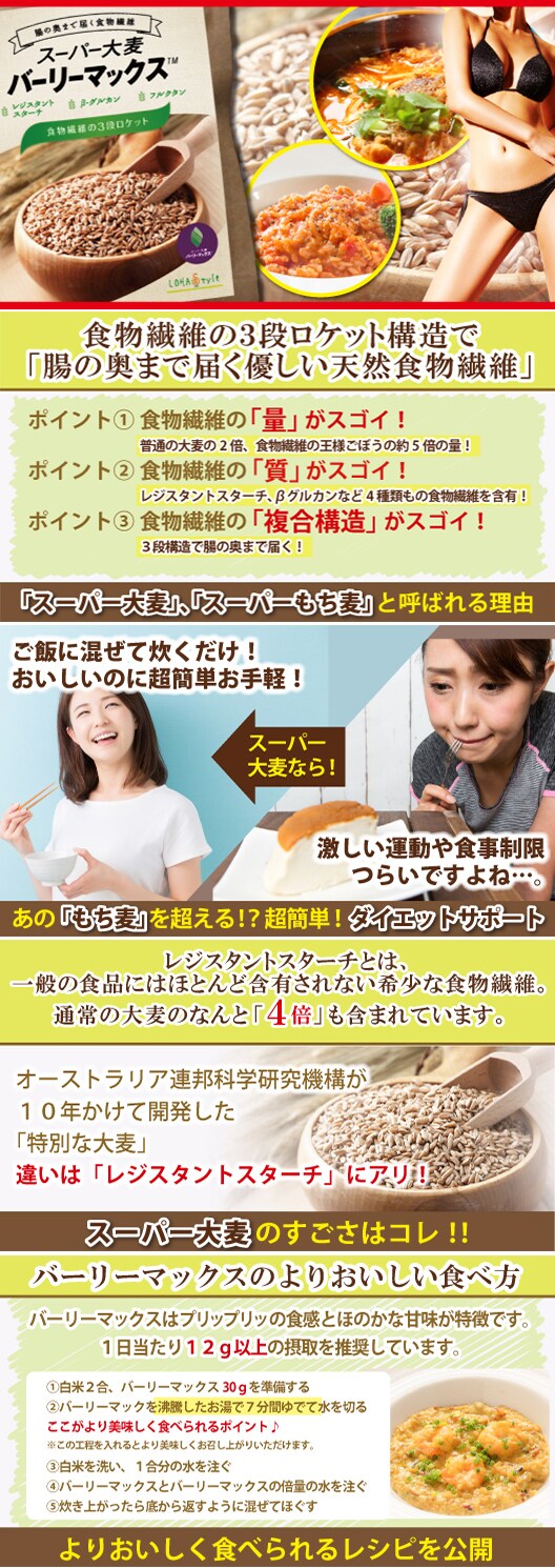 スーパー大麦 バーリーマックス 180g | TVで紹介!あの「もち麦」を超える!?ご飯に混ぜて炊くだけ!おいしいのにダイエットサポート!?食物繊維の量・質・構造が圧倒的にスゴイ!