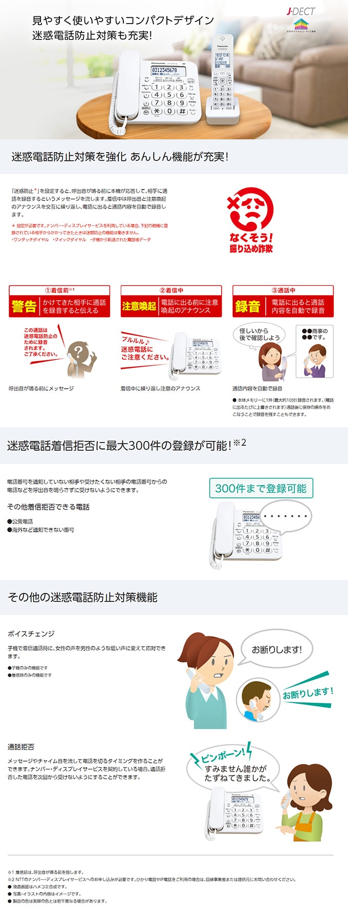 ◆迷惑電話着信拒否に最大300件の登録が可能※1
