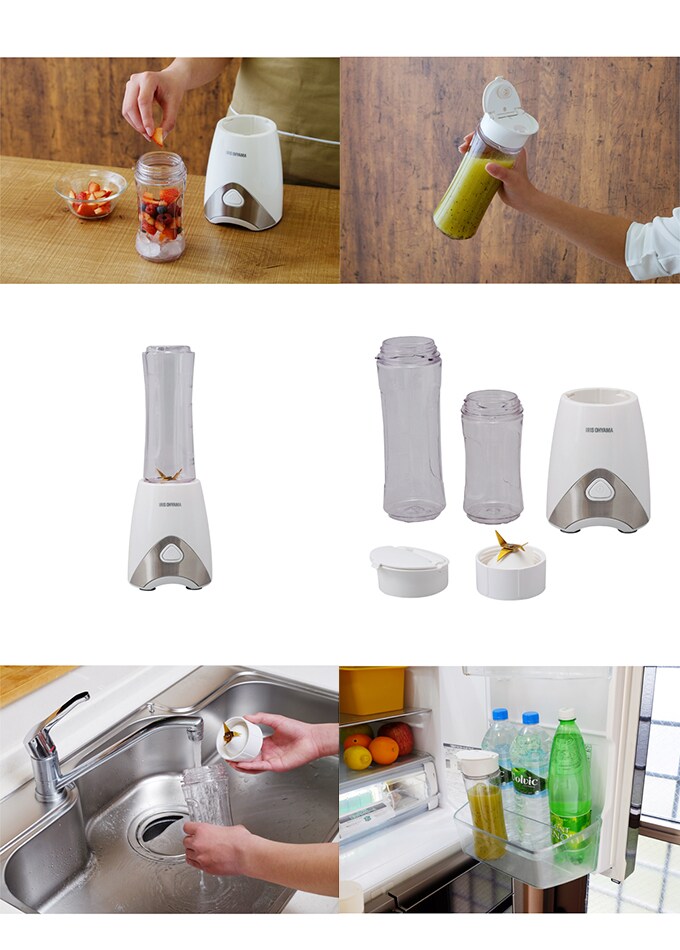 アイリスオーヤマ/ボトルブレンダー(600ml)アイボリー/IBB-600|フルーツジュースやスムージーがお家で簡単に作れて、ボトルはそのままバックの中へ!