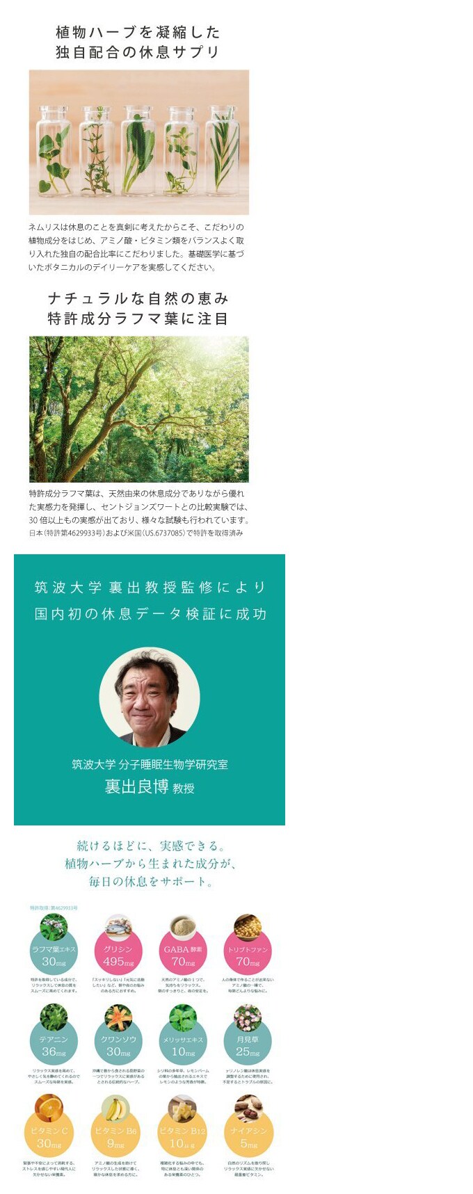 ネムリス 20日分:(18.0g[300mg×60粒])×2個 | 筑波大学教授監修、特許成分配合の休息サプリメント!