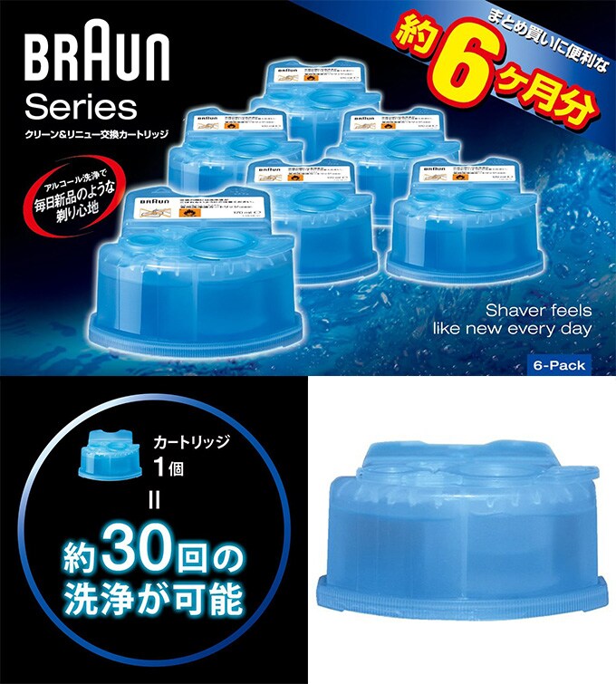 ブラウン(BRAUN)/アルコール洗浄液 (メンズシェーバー用) 6個入り/CCR6 ※正規品|毎日新品のような剃り心地を!通常の使用で洗浄液カートリッジ1個につき、約30回の洗浄が可能