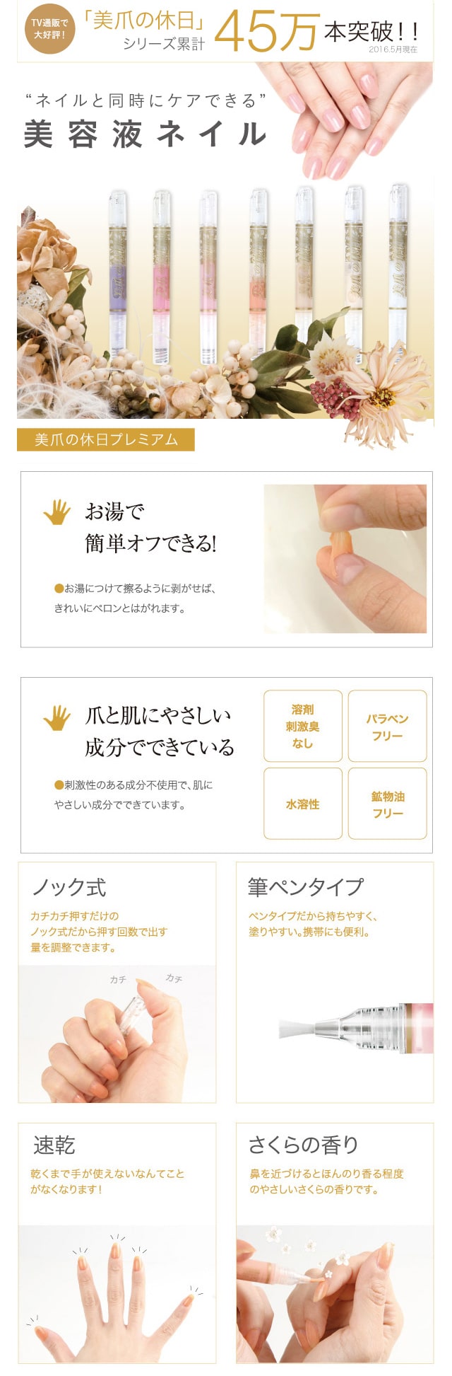 ツンとしたイヤな臭いがしないウォーターベースの美容液ネイルです。
