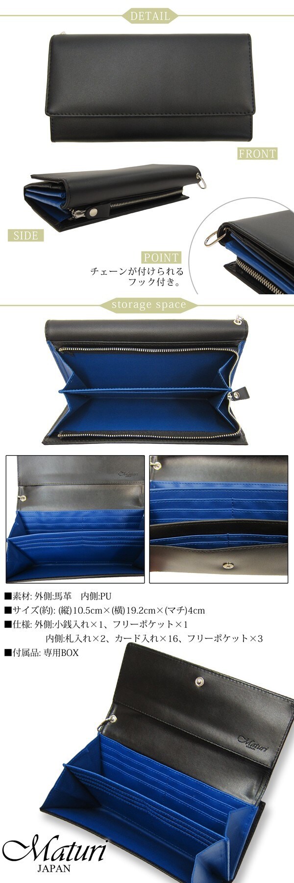 [ブラック×ブルー]マトゥーリ(Maturi) エグゼクティブ コードバン 二つ折り長財布/MR-061 | 見た目だけでなく、収納力も抜群。大切な人への贈り物としてもオススメです!