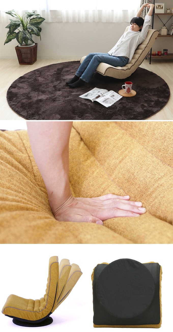 座面はポケットコイル16個入りで座り心地良好。座面下の回転盤で360度回転可能&背もたれは3段階リクライニングで使い勝手抜群!