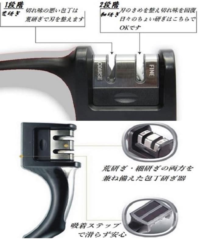 2段階の研ぎ:荒研ぎ、細研ぎ、さまざまな状態の包丁やナイフに使えます。