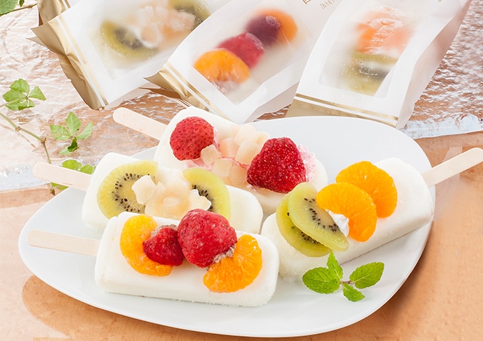国産フルーツをごろっとトッピングした4種のアイスバーです。
