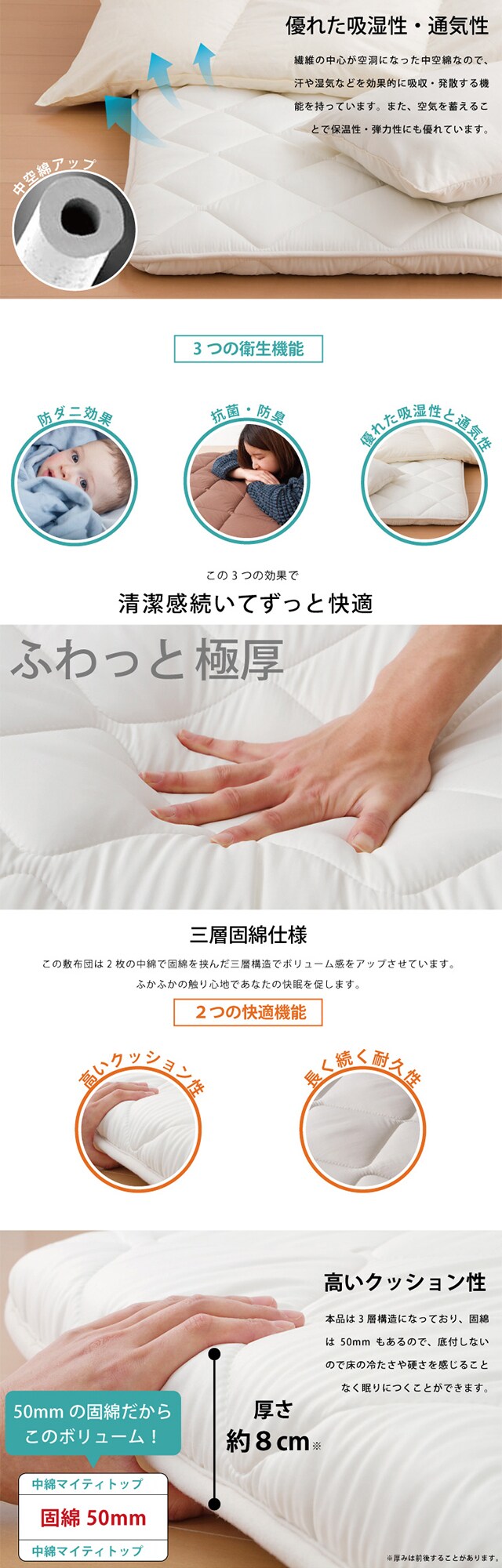 [ブラウン/シングル]テイジン マイティトップ 三層式敷布団 | 極厚なのに軽い!こたわりの日本製敷布団