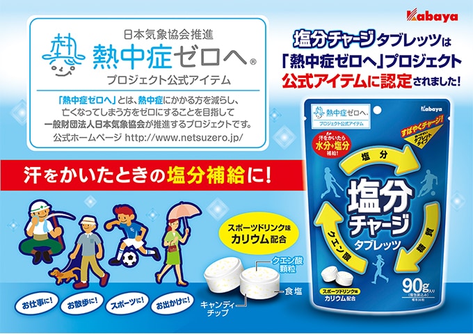 発汗によって体から失われる「カリウム」「ナトリウム」を配合しました。キャンディチップ入りのスポーツドリンク味です。