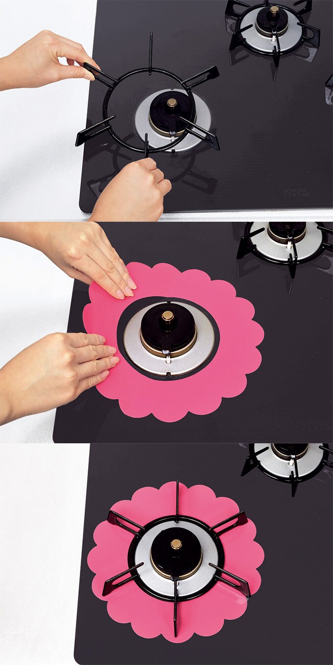 [2枚組]ガラストップガスコンロ用焼け焦げ汚れ防止シート 24cm ピンク | シリコーン加工で熱に強く、しっかりくっつくからズレにくい!