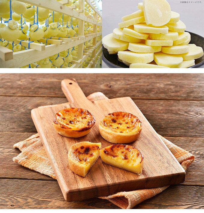 北海道産素材を贅沢に使用したエッグタルト。サクサク食感の薄いパイ生地と濃厚な甘さのクリームがマッチ。
