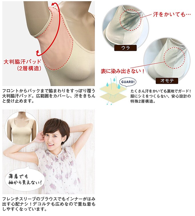 インナーの袖の形が、しっかりとワキ汗をキャッチします!