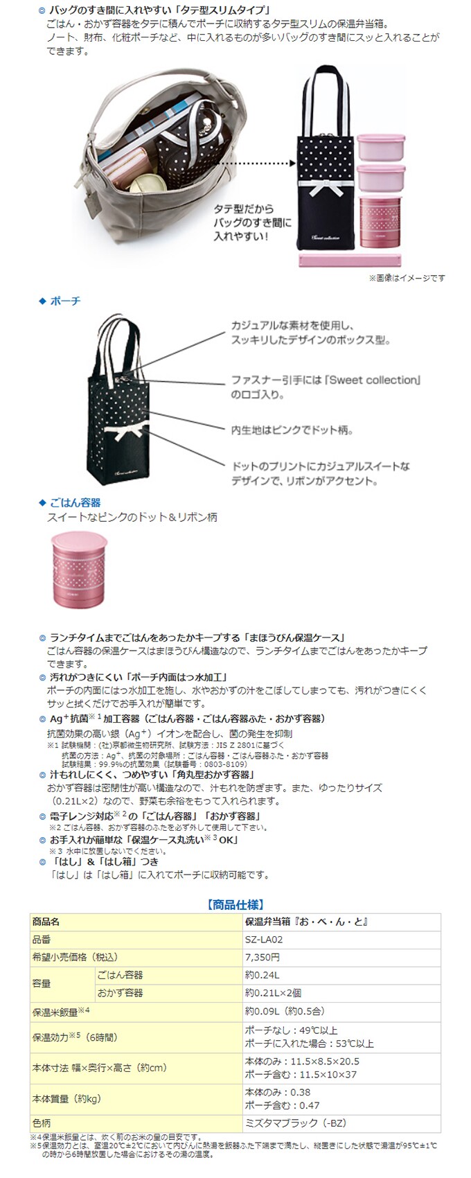 象印マホービン(ZOJIRUSHI)/保温弁当箱 お・べ・ん・と ミズタマピンク/SZ-LA02-BZ | 「タテ型スリムタイプ」保温弁当箱。