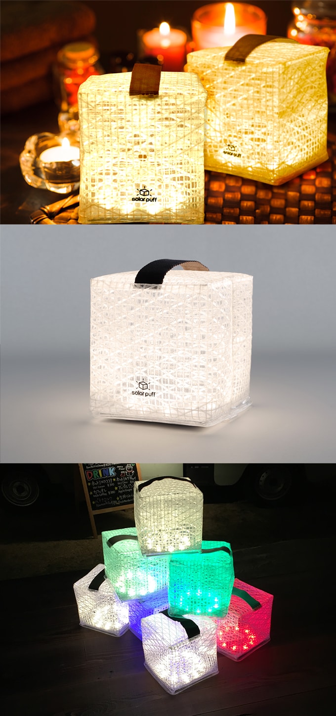 [warm light]ランドポート ソーラー式エコライト ソーラーパフ|電気が要らない折り畳めるソーラー式エコランタンです。