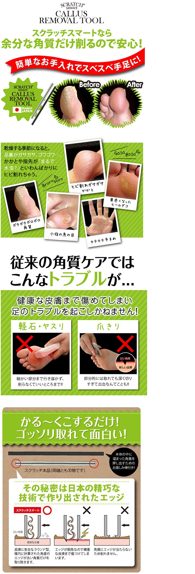 スクラッチスマート 角質削り|古い角質をごっそりそぎ落としてなめらかな素足を手に入れましょう。
