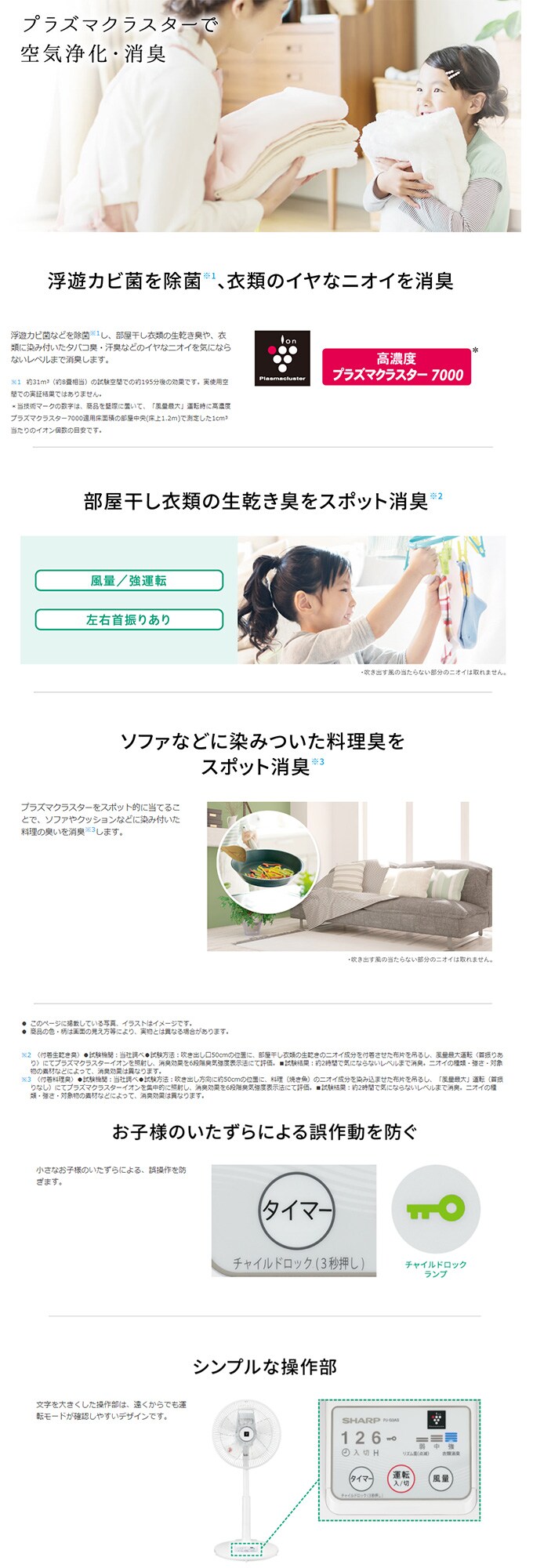 - SHARP(シャープ)/プラズマクラスター扇風機 (空気浄化・消臭・風量3段階 ※リズム風あり) (ホワイト/リモコン付き)/PJ-G3AS-W