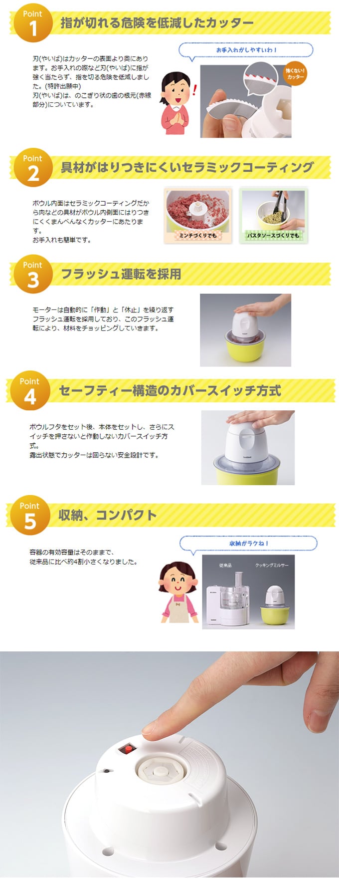 Iwatani(イワタニ)/クッキングミルサー/IFP-230|指が切れる危険を低減したカッター!多彩なメニューが楽しめるレシピ付き!!