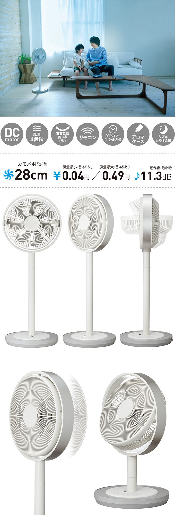 ドウシシャ/カモメファン リビング扇風機(DCモーター搭載/やわらか羽根/リモコン付)(風量4段階)/FKLT-281D WH|やさしい風と過ごす心地良い暮らし。上向き90°下向き30°角度調節可能!