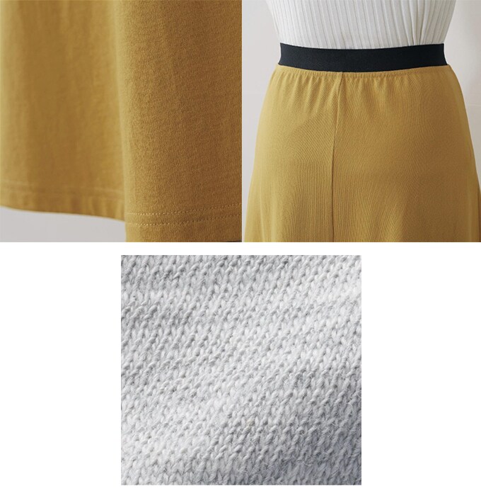 [杢グレー・マスタード・ネイビー/L]【ベルメゾン】3枚セット:カットソーマキシスカート | ドライな肌ざわりとふくらみのある風合いが魅力の空紡糸を使ったカットソースカート。